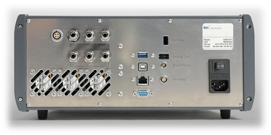 Das DUET ist mit zwei unabhängigen Spiegel-Widerstandsthermometern (PRTs, Pt-100, 4-Leiter) für die präzise Messung der Spiegeltemperatur ausgestattet. Das zweite PRT ermöglicht die direkte Temperaturmessung mit Ihrer eigenen Widerstandsbrücke oder unserem optionalen Präzisionsthermometer PT12.