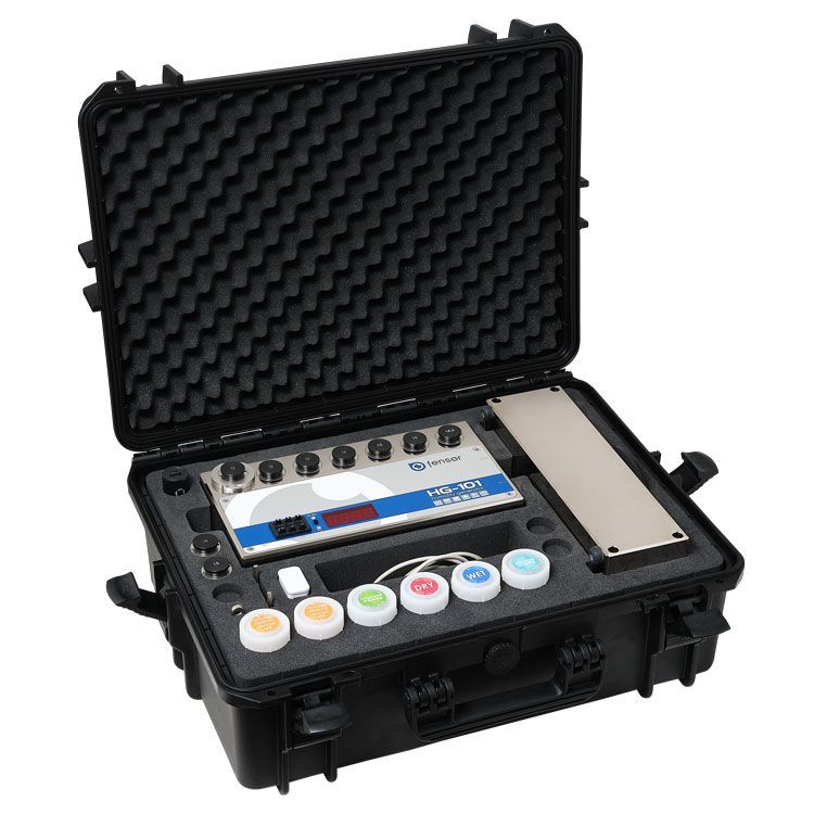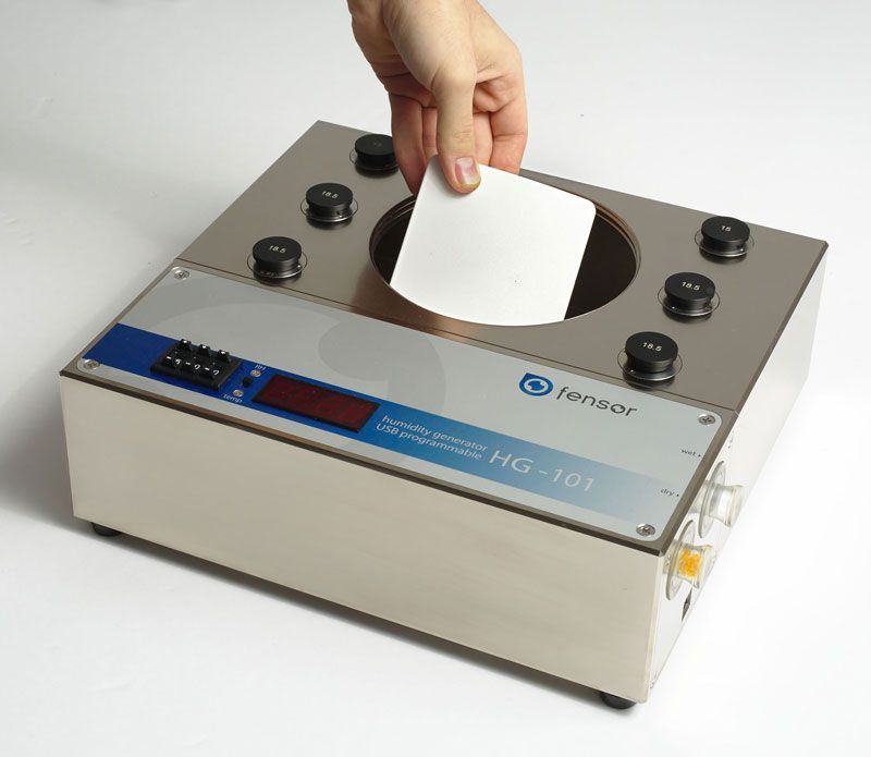 Der HG-101 ist so konzipiert, dass dieser innerhalb einer temperaturgeregelten Kammer betrieben werden kann, ohne dass die Homogenität der Temperatur innerhalb der HG101-Messkammer beeinträchtigt wird. Dies wurde durch die Verwendung von ausgewählten Materialien erreicht, welche eine hohe Temperaturleitfähigkeit und zugleich eine geringe Hygroskopizität aufweisen.